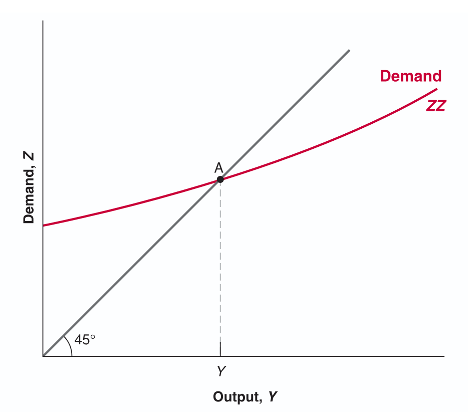 - recalculating equilibrium intersection on new compared to 45° , intersection is lower