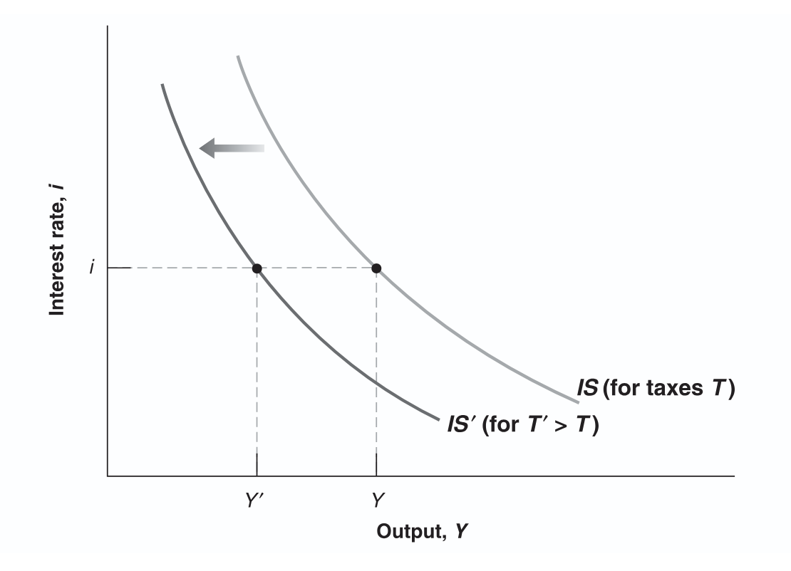 fiscal contraction → shifts left → is lower