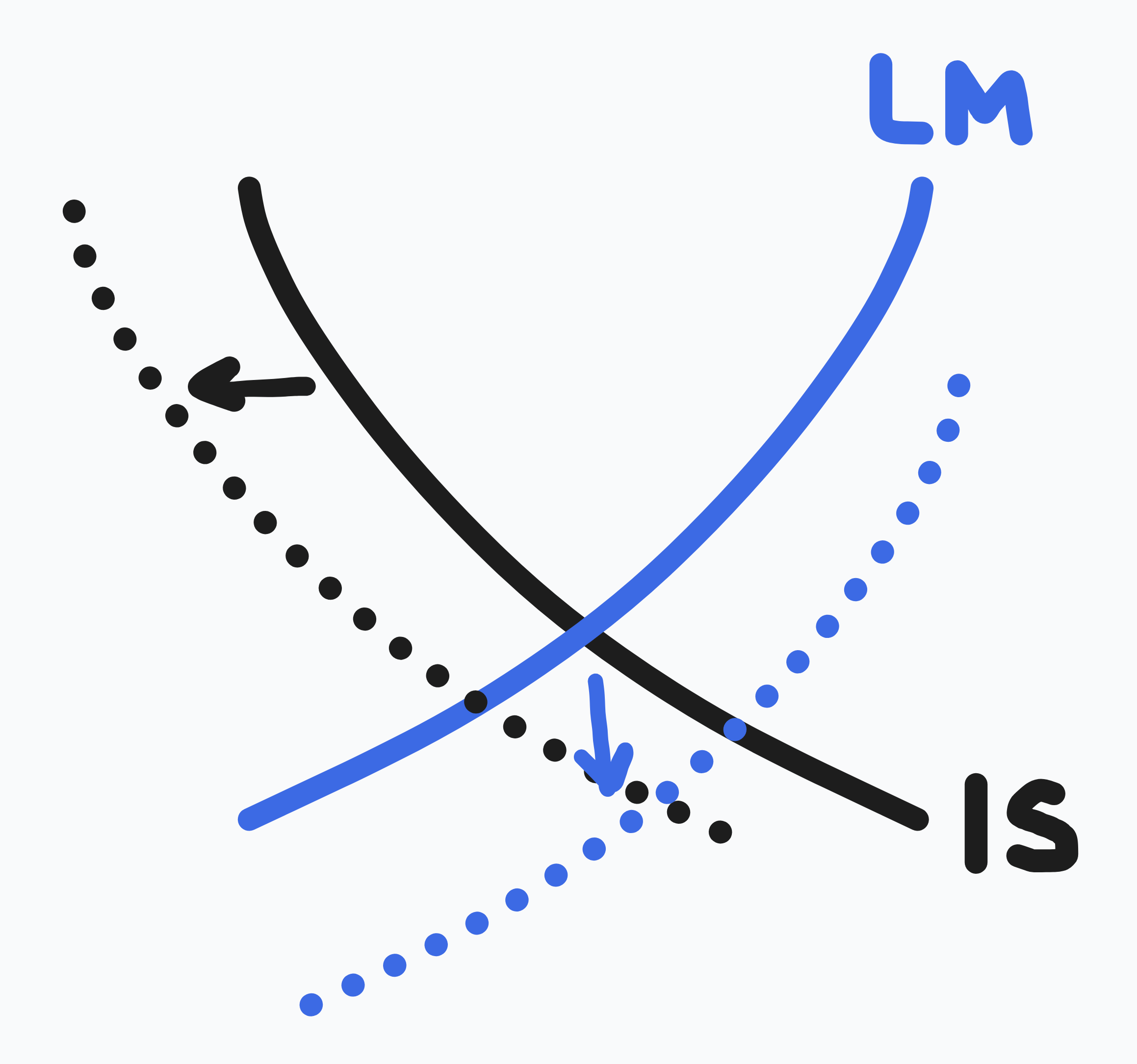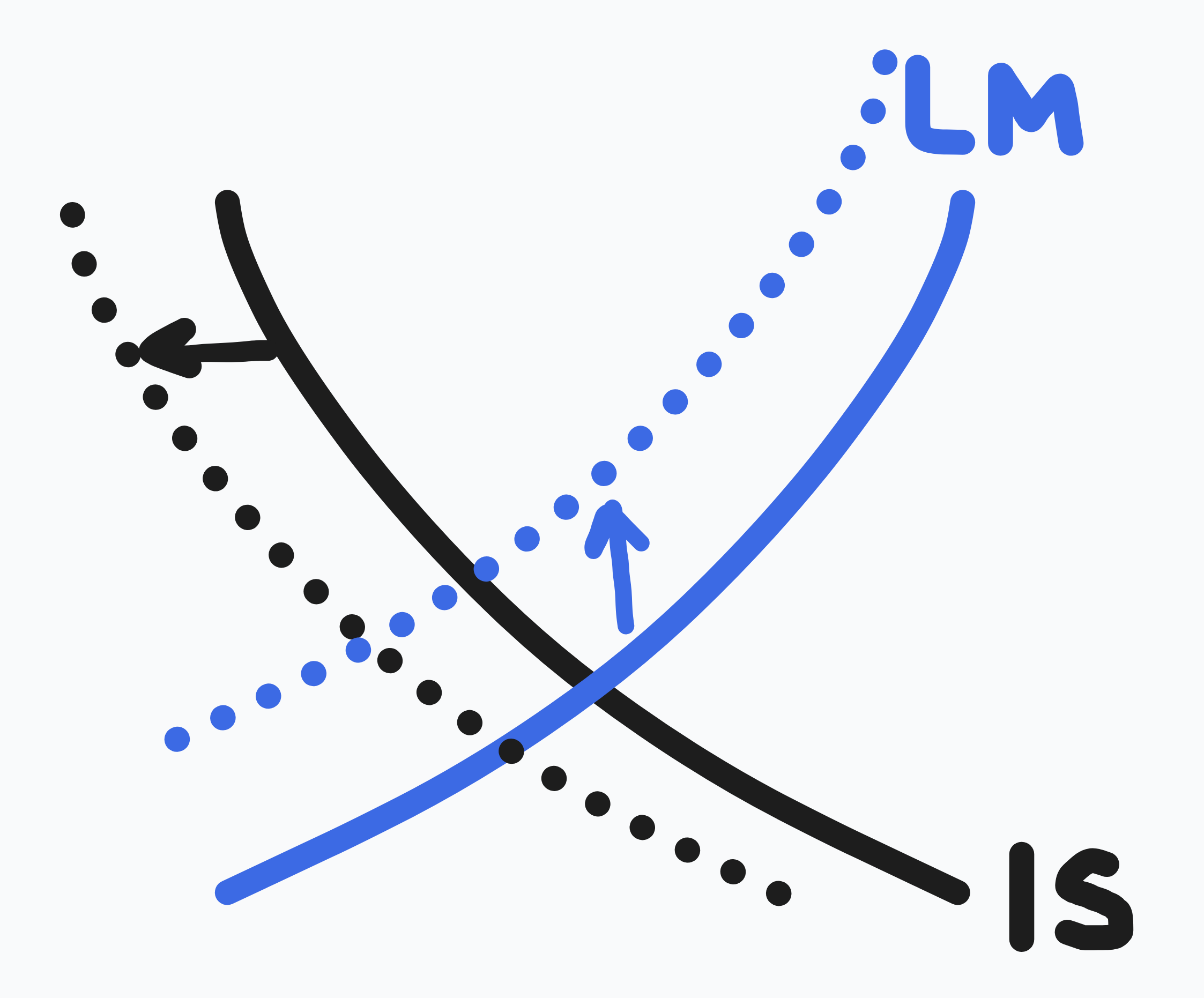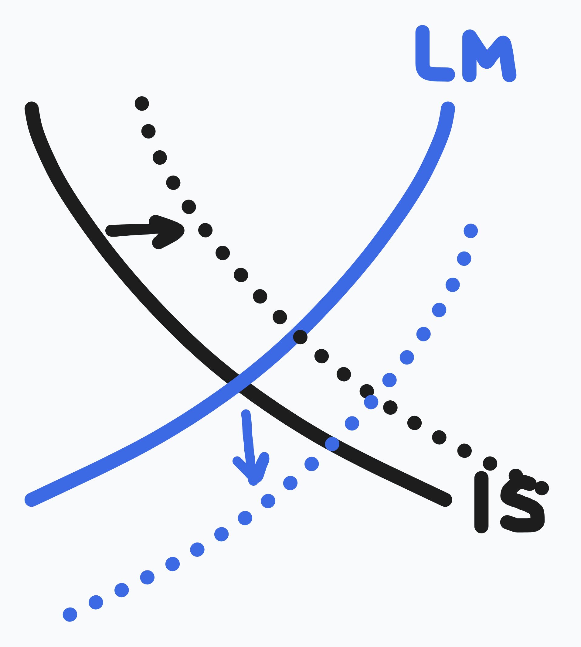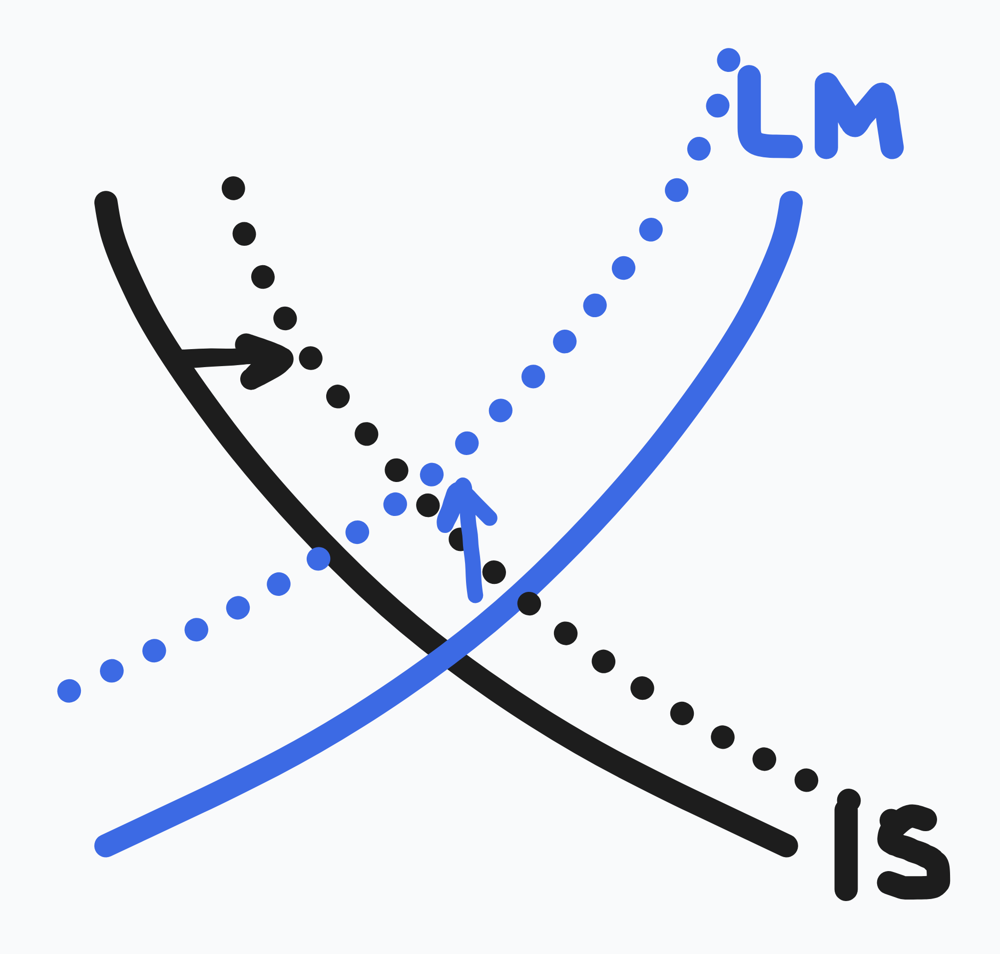 - → government spending increases for stimulus etc ( right)