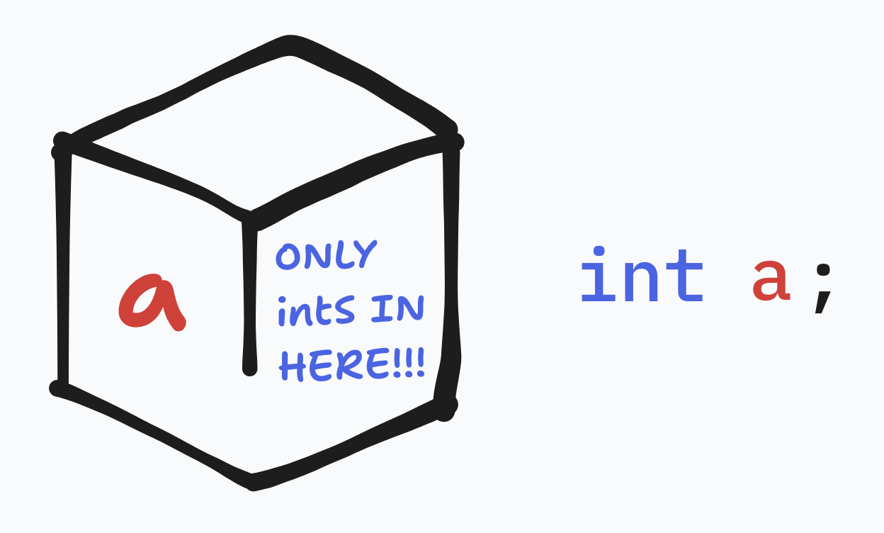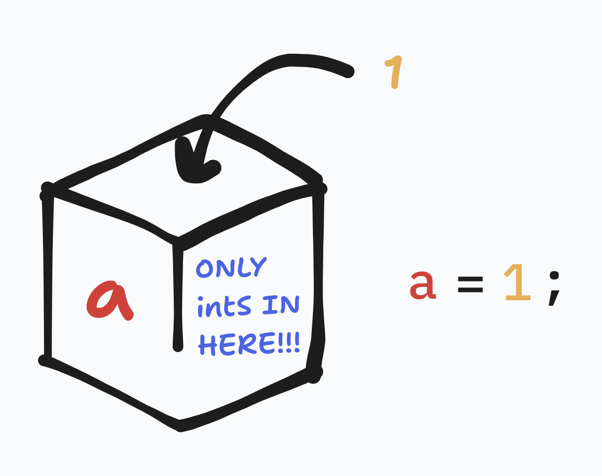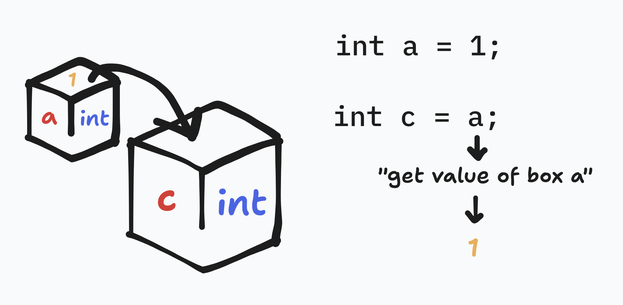 Now, imagine we have two variables. (type name = value; is shorthand).